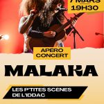 Après avoir assuré la première partie pour des artistes renommés comme Selah Sue, Ayo, Fatoumata Diawara, Flavia Coelho ou encore Faada Freddy, Malaka vient nous offrir une expérience envoûtante où la simplicité révèle toute sa profondeur.